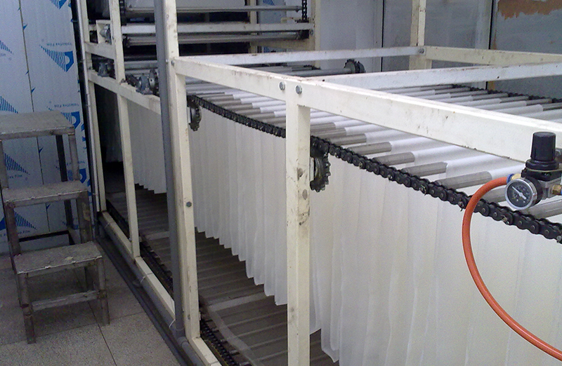 Kuumailmakuivaus: Kuumailmakuivauksessa käytetään pakotettua ilmankiertoa ja säädeltyä lämpötilaa kosteuden poistamiseksi nopeasti nuudeleista. Nuudelit kuljetetaan tyypillisesti lämmitetyn kammion läpi kuljetinhihnalla tai ripustetaan tarjottimille, kun kuumaa ilmaa puhalletaan niiden päälle. Tämä menetelmä mahdollistaa tehokkaan ja tasaisen kuivauksen, ja sitä voidaan säätää tiettyjen kuivausparametrien saavuttamiseksi.