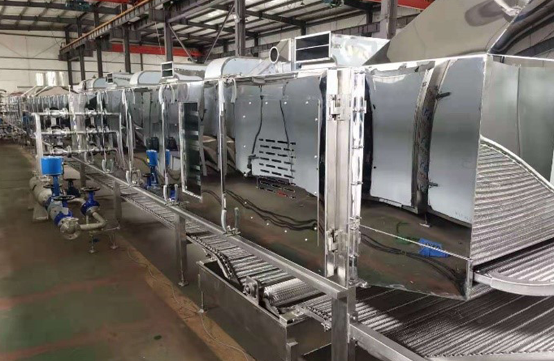 Puhdistus- ja desinfiointilaitteet: Elintarviketurvallisuusstandardien ylläpitämiseksi puhdistus- ja desinfiointilaitteet, kuten pesukoneet, desinfiointitunnelit ja kuivaimet, ovat välttämättömiä tuotantolinjan ja laitteiden pitämiseksi puhtaina erien välillä ja seisokkien aikana.
